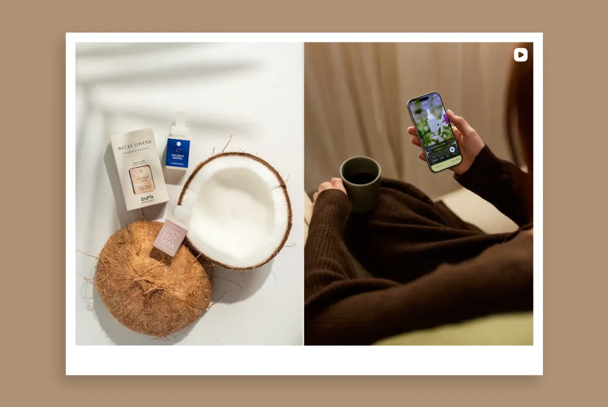 They sell smart home fragrance diffusers and scent refills, packaged as a daily routine – perfect for home-obsessed shoppers who want ambiance on autopilot.