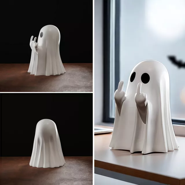 Cute Middle Finger Ghost Statue Halloween Figurine